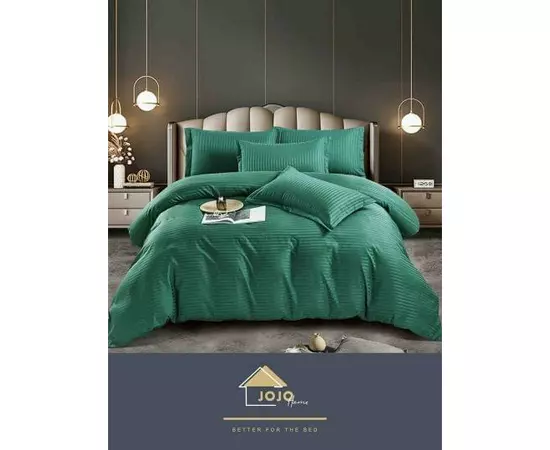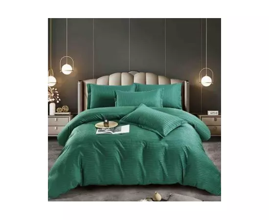 Lenjerie de Pat Dublu Cu Elastic - 100% Bumbac Damasc 6 Piese-JO173 Verde