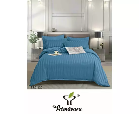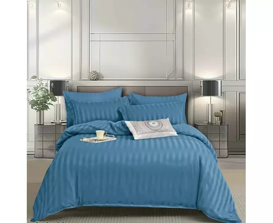 Lenjerie de Pat Dublu cu Elastic Bumbac Damasc 6 Piese, Albastru - CPL342