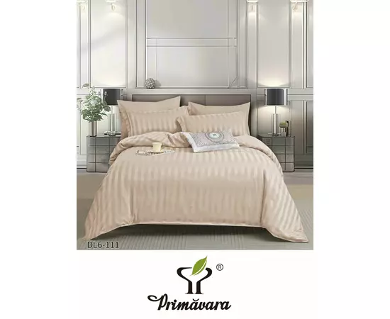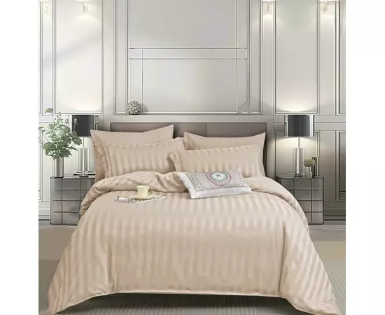 Lenjerie de Pat Dublu cu Elastic Bumbac Damasc 6 Piese, Cappuccino - CPL332