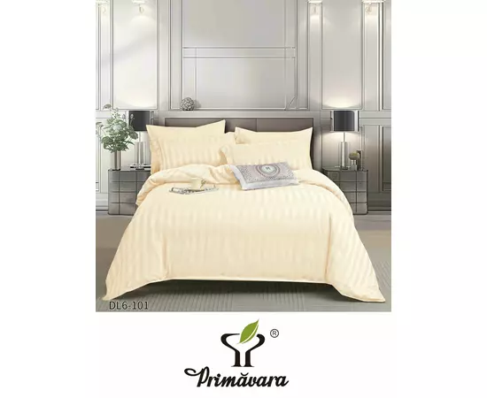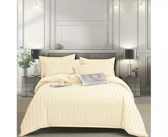 Lenjerie de Pat Dublu cu Elastic Bumbac Damasc 6 Piese, Crem - CPL334