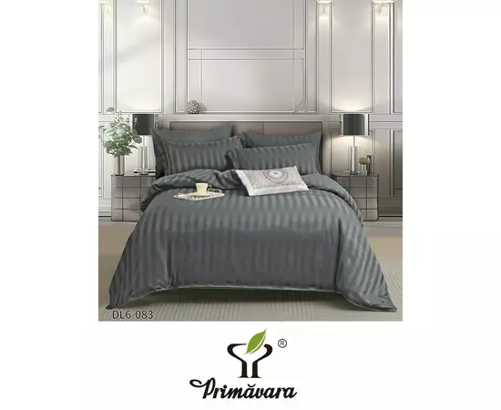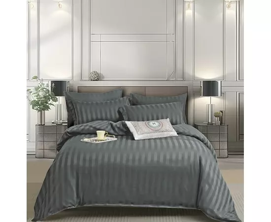 Lenjerie de Pat Dublu cu Elastic Bumbac Damasc 6 Piese, Gri Inchis - CPL338