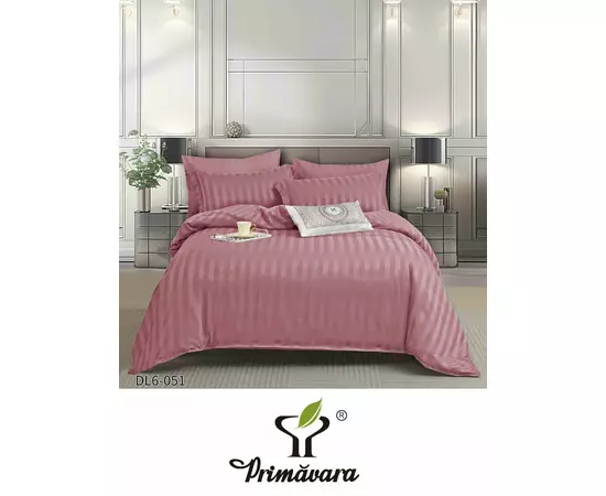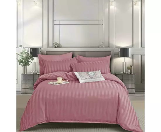 Lenjerie de Pat Dublu cu Elastic Bumbac Damasc 6 Piese, Roz Pudra - CPL339
