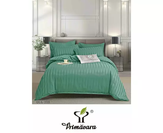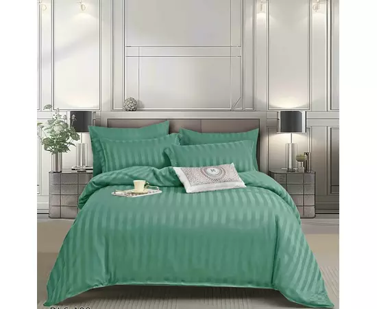 Lenjerie de Pat Dublu cu Elastic Bumbac Damasc 6 Piese, Verde - CPL333