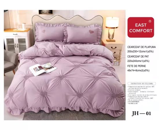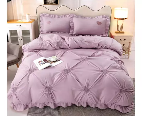 Lenjerie de Pat Finet, Pliuri Brodate, 4 piese, Lila - EAT88