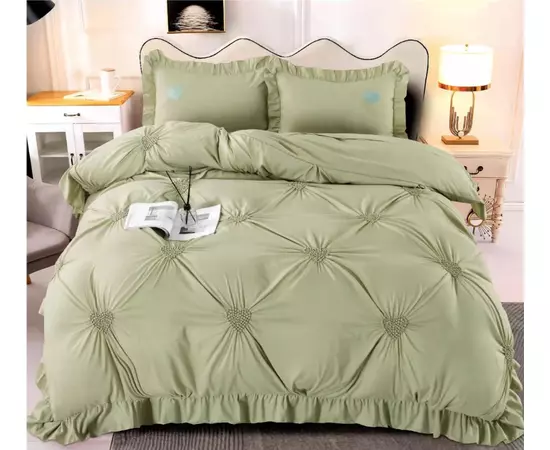 Lenjerie de Pat Finet, Pliuri Brodate, 4 piese, Verde - EAT87