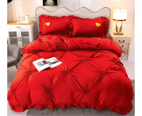 Lenjerie de Pat Finet, Pliuri Brodate, 4 piese, Rosu - EAT83