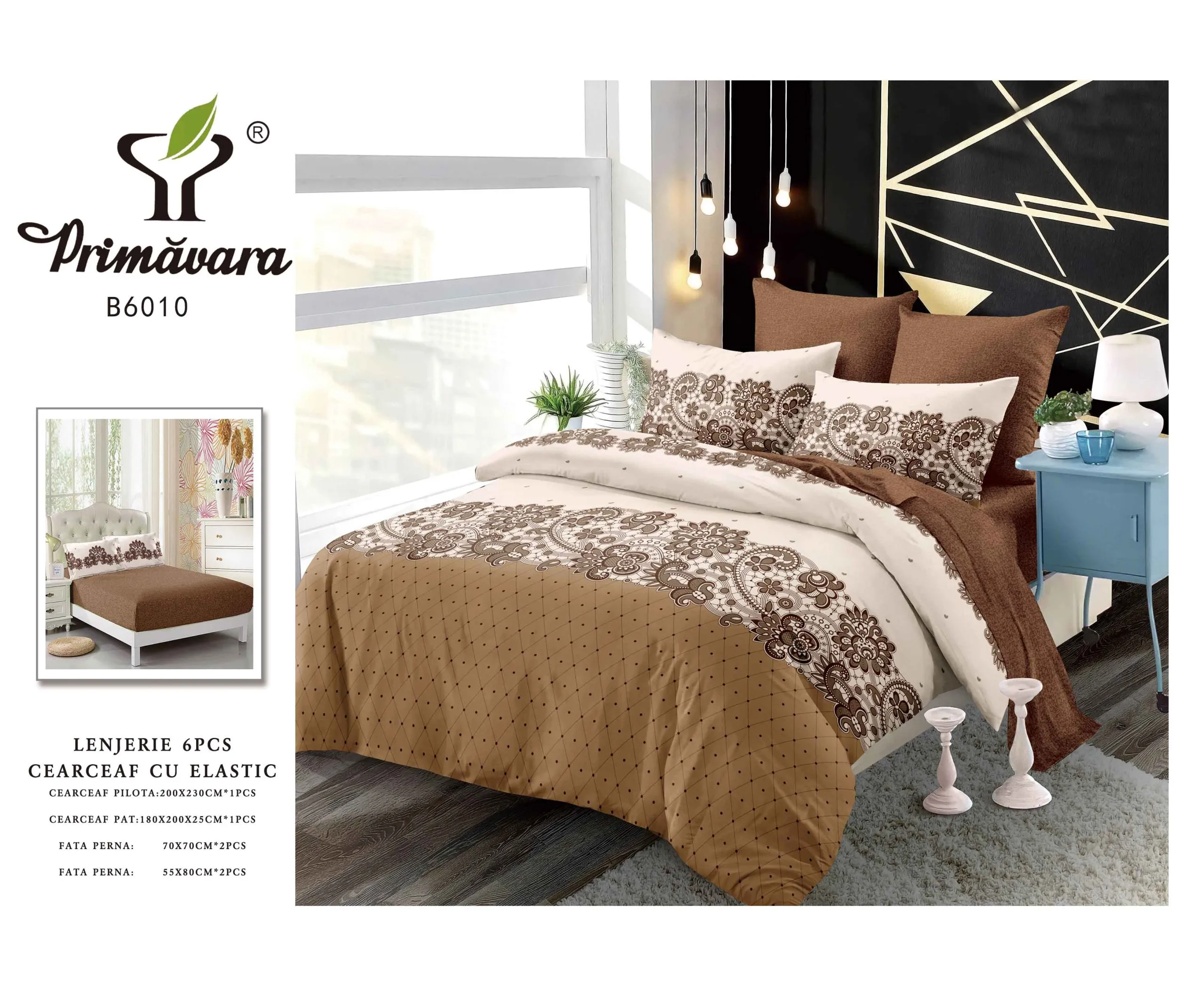 Lenjerie de Pat Finet 6 Piese Cu Elastic- CPL155