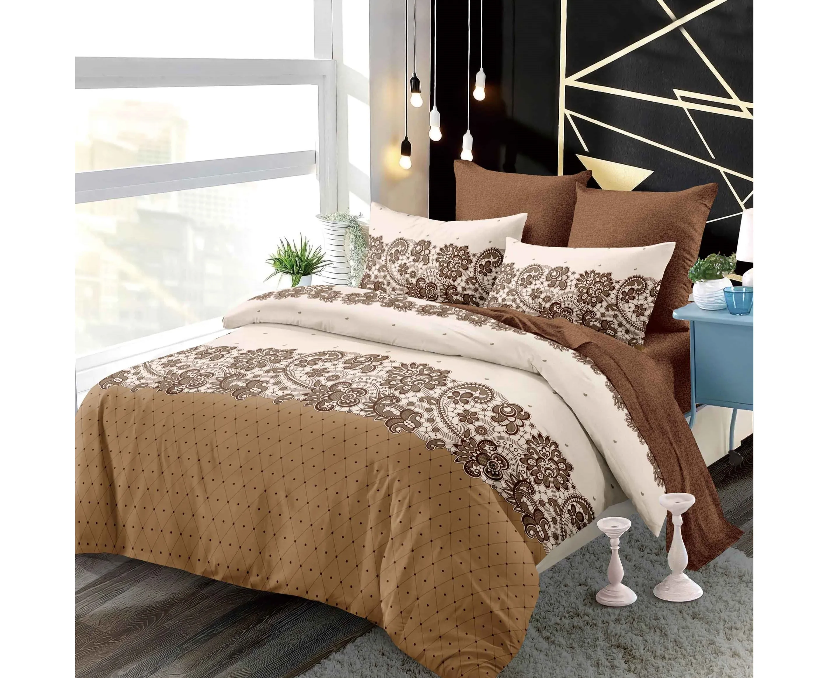 Lenjerie de pat realizata din bumbac finet - 6 Piese (cearsaf de pat cu elastic)