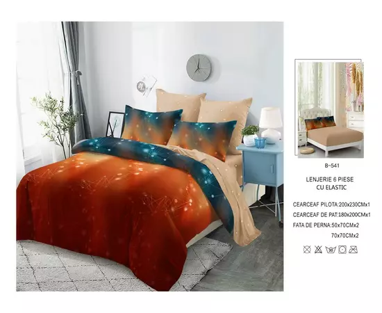Lenjerie De Pat Bumbac Finet 6 Piese Cu Elastic