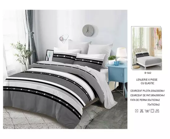 Lenjerie De Pat Bumbac Finet 6 Piese Cu Elastic