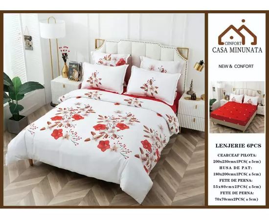 Lenjerie de pat realizata din bumbac finet - 6 Piese (cearsaf de pat cu elastic)