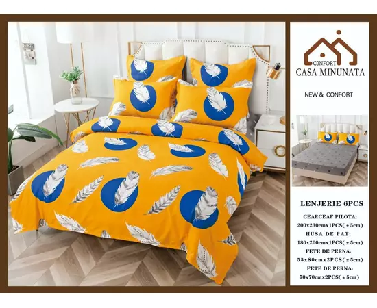 Lenjerie de Pat Finet 6 Piese Cu Elastic- PIT42