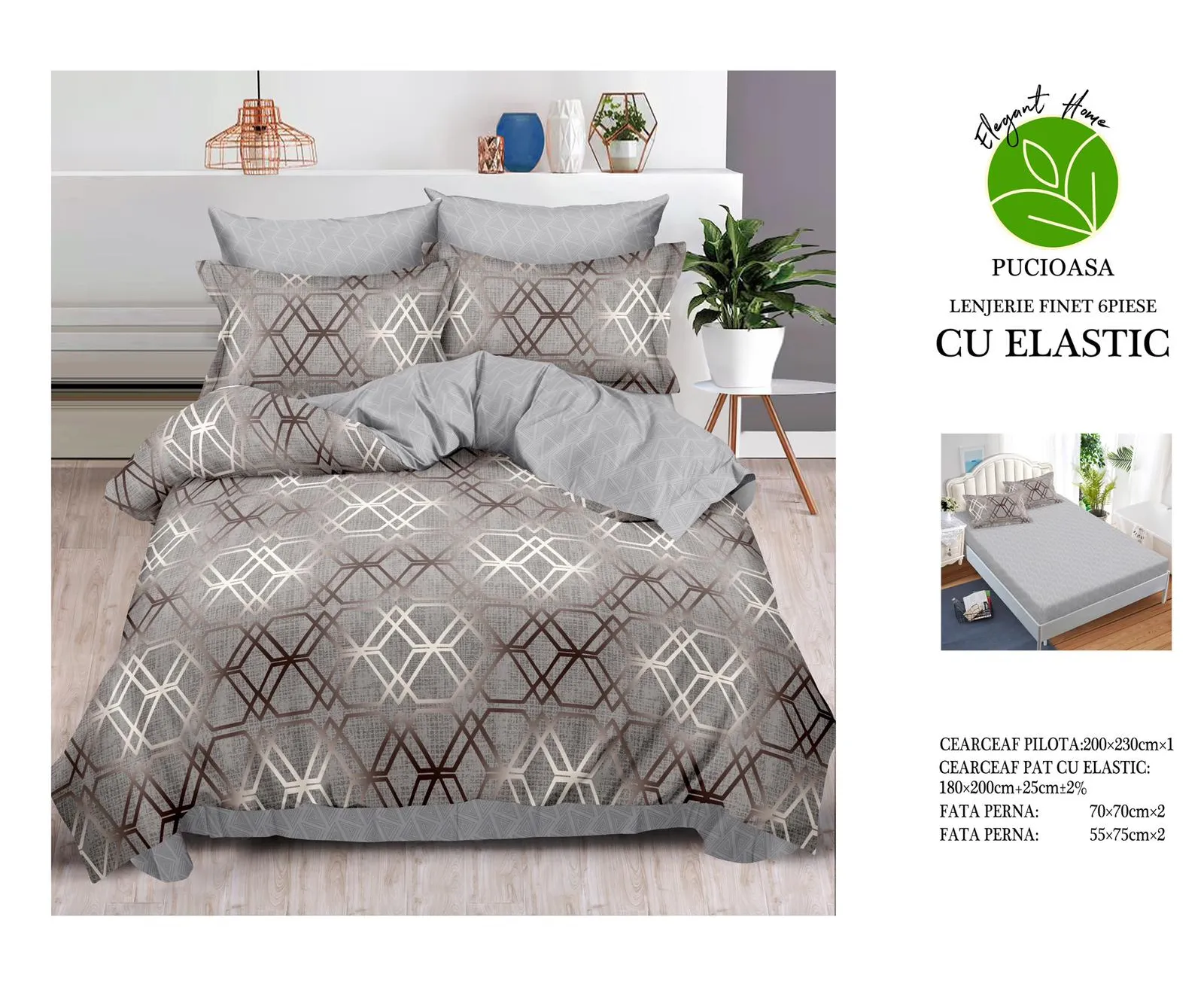 Lenjerie De Pat Bumbac Finet 6 Piese Cu Elastic