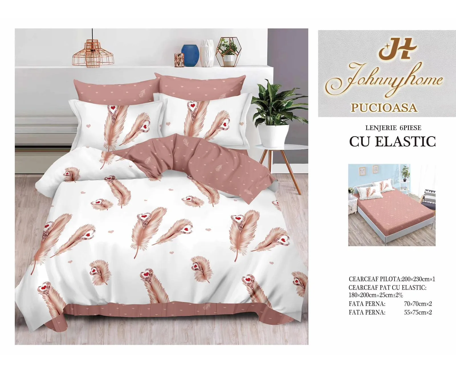 Lenjerie de pat realizata din bumbac finet - 6 Piese (cearsaf de pat cu elastic)