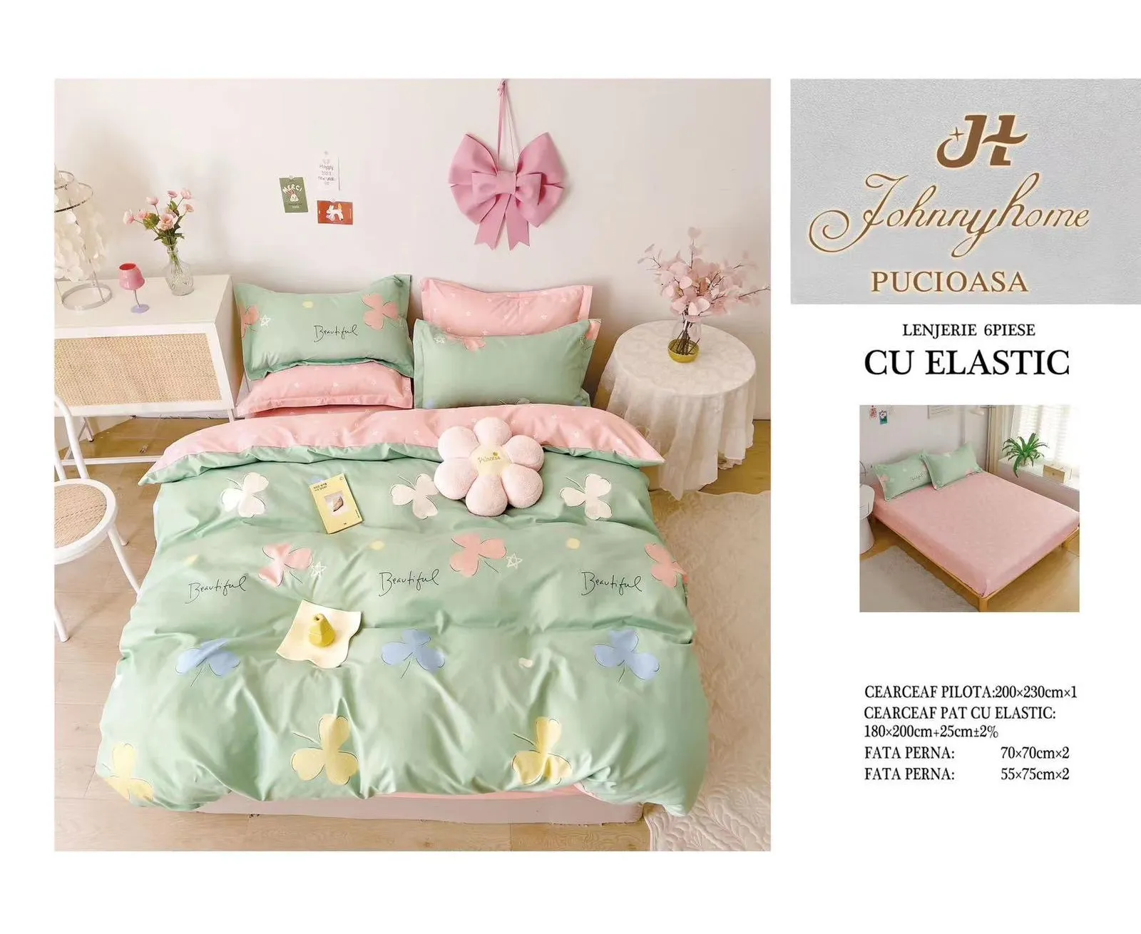Lenjerie de Pat Finet 6 Piese Cu Elastic- SIPRT244