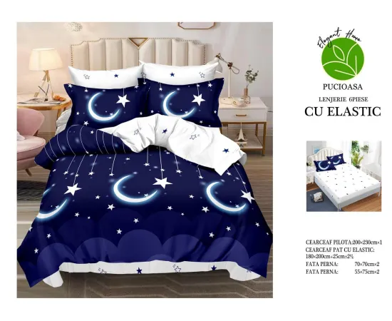 Lenjerie De Pat Bumbac Finet 6 Piese Cu Elastic