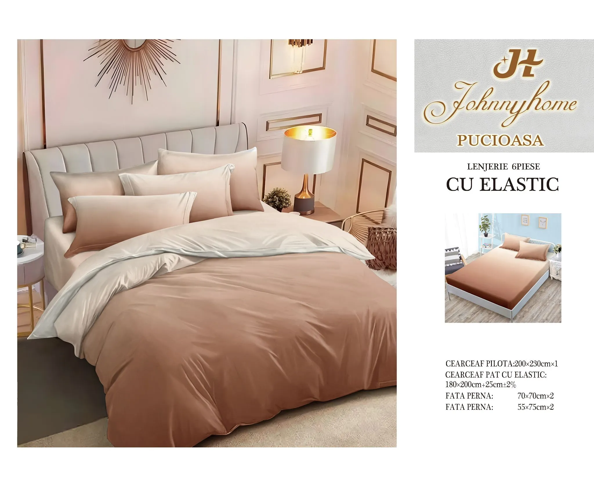 Lenjerie de pat realizata din bumbac finet - 6 Piese (cearsaf de pat cu elastic)