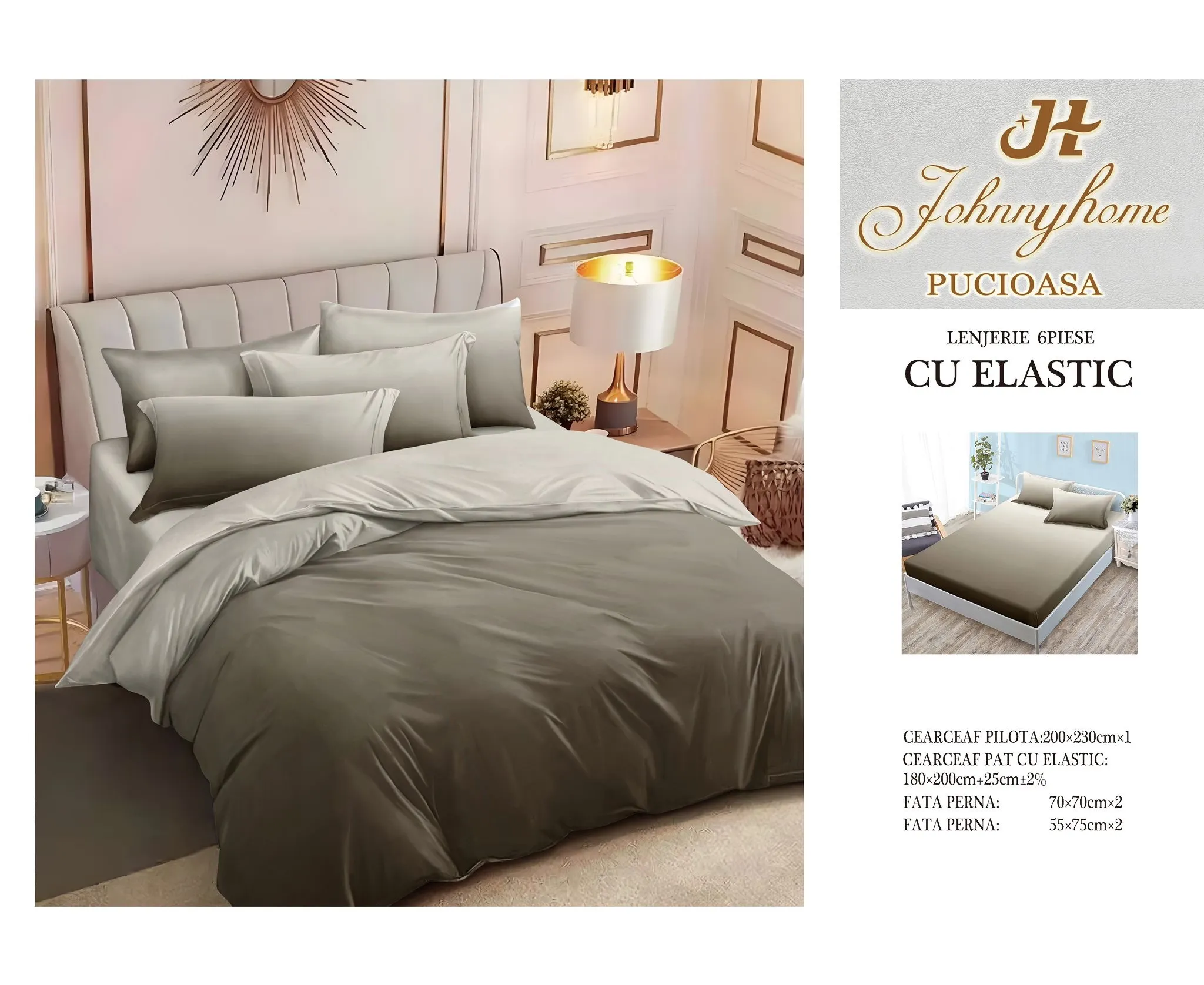 Lenjerie de pat realizata din bumbac finet - 6 Piese (cearsaf de pat cu elastic)
