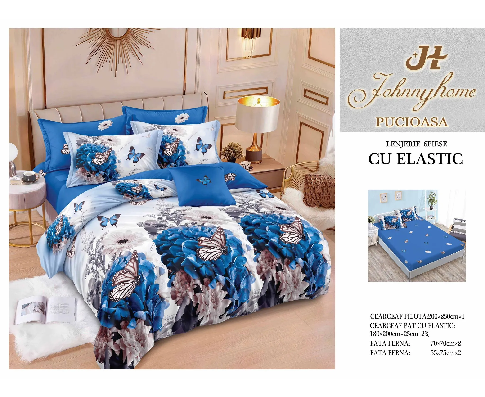 Lenjerie de Pat Finet 6 Piese Cu Elastic- SIPRT300