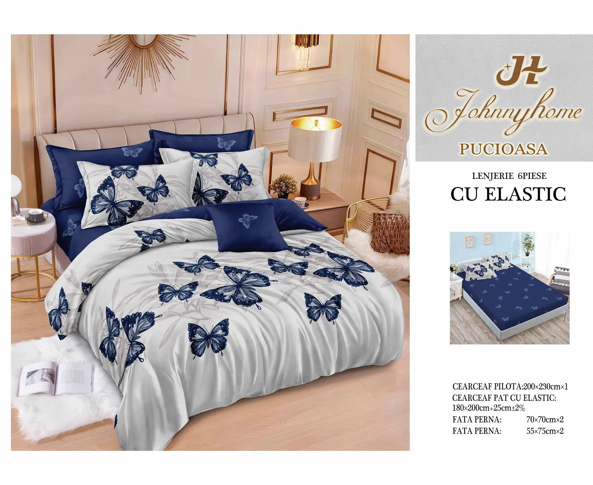 Lenjerie de Pat Finet 6 Piese Cu Elastic- SIPRT304
