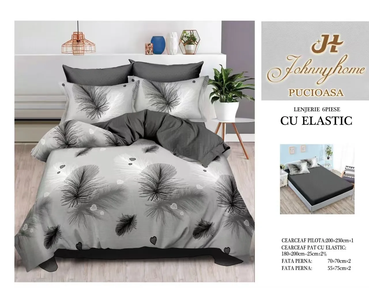 Lenjerie De Pat Bumbac Finet 6 Piese Cu Elastic