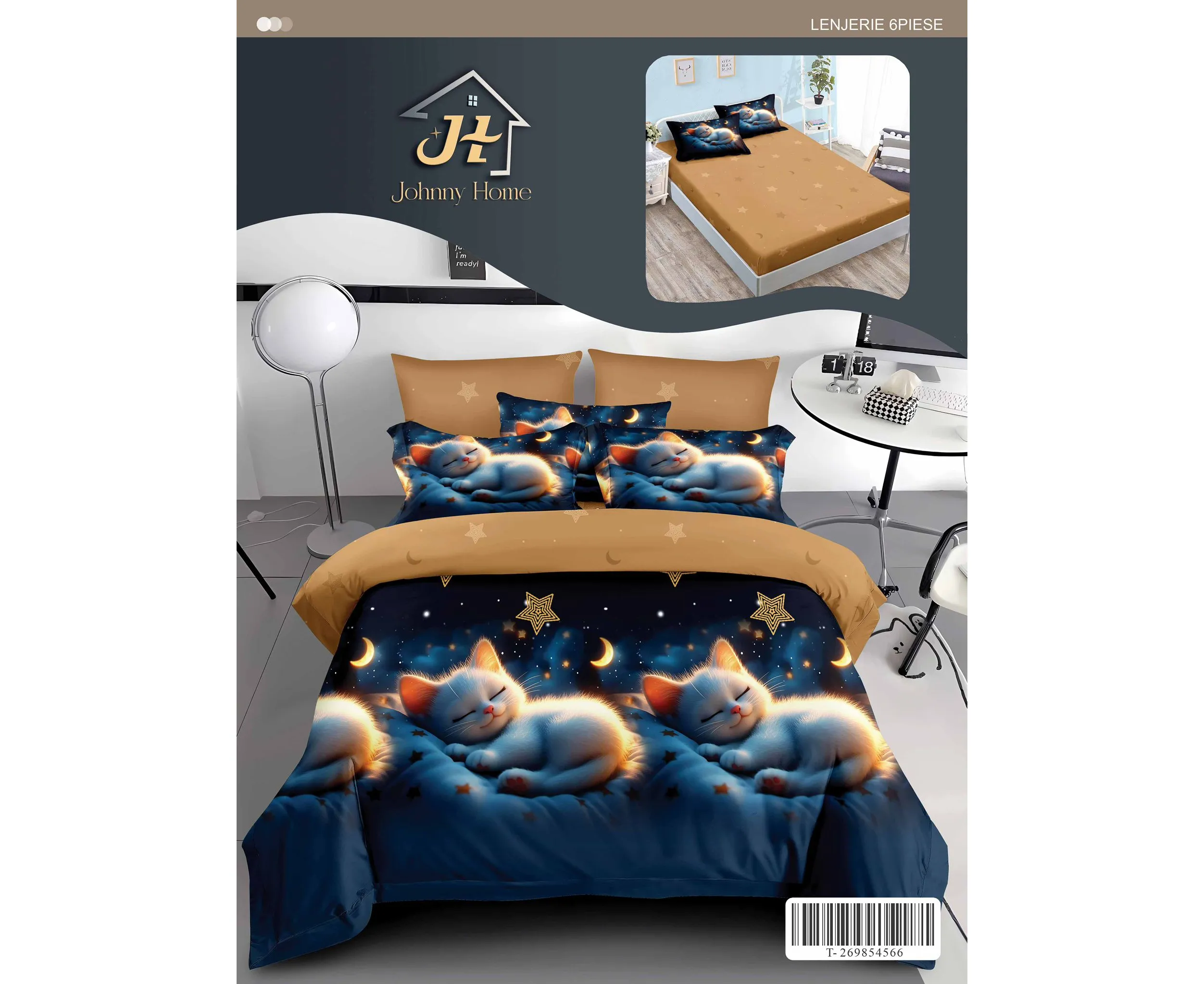 Lenjerie de pat realizata din bumbac finet - 6 Piese (cearsaf de pat cu elastic)