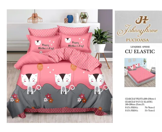 Lenjerie de pat realizata din bumbac finet - 6 Piese (cearsaf de pat cu elastic)