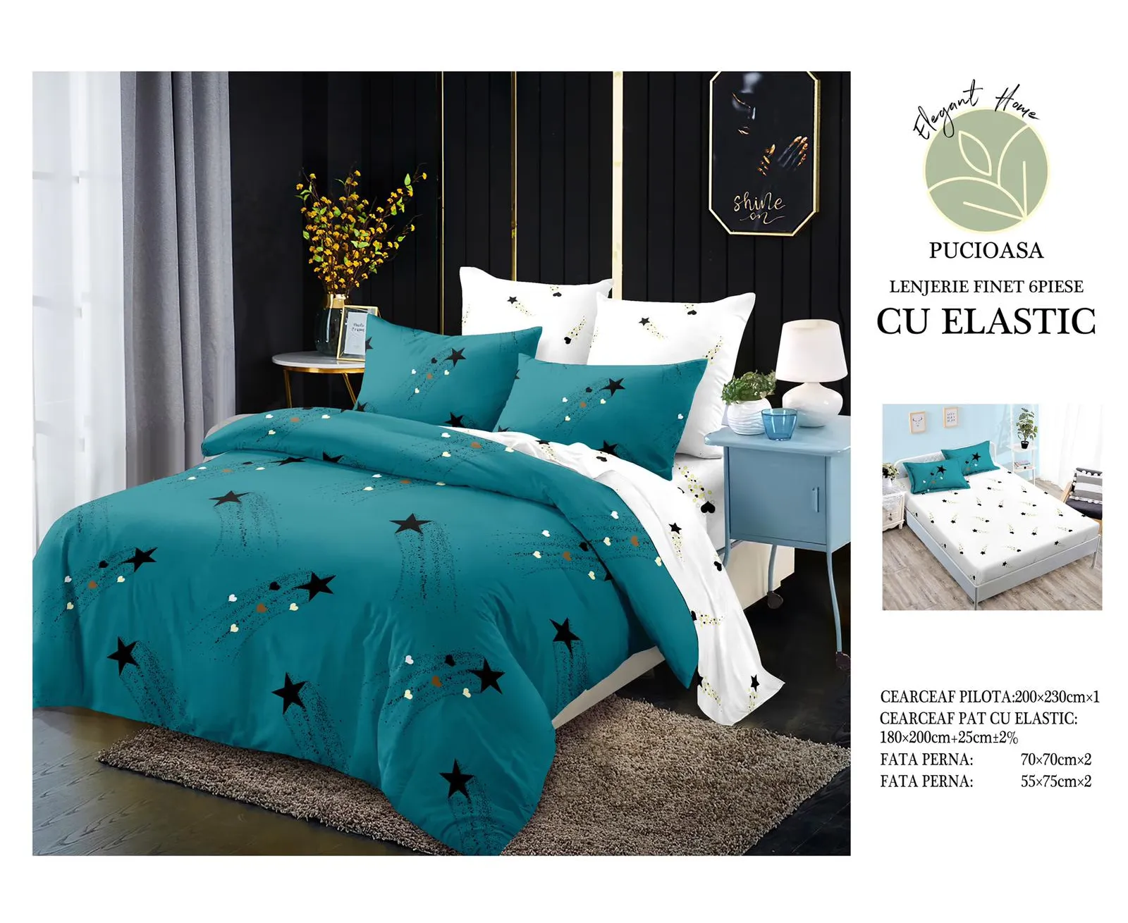Lenjerie De Pat Bumbac Finet 6 Piese Cu Elastic