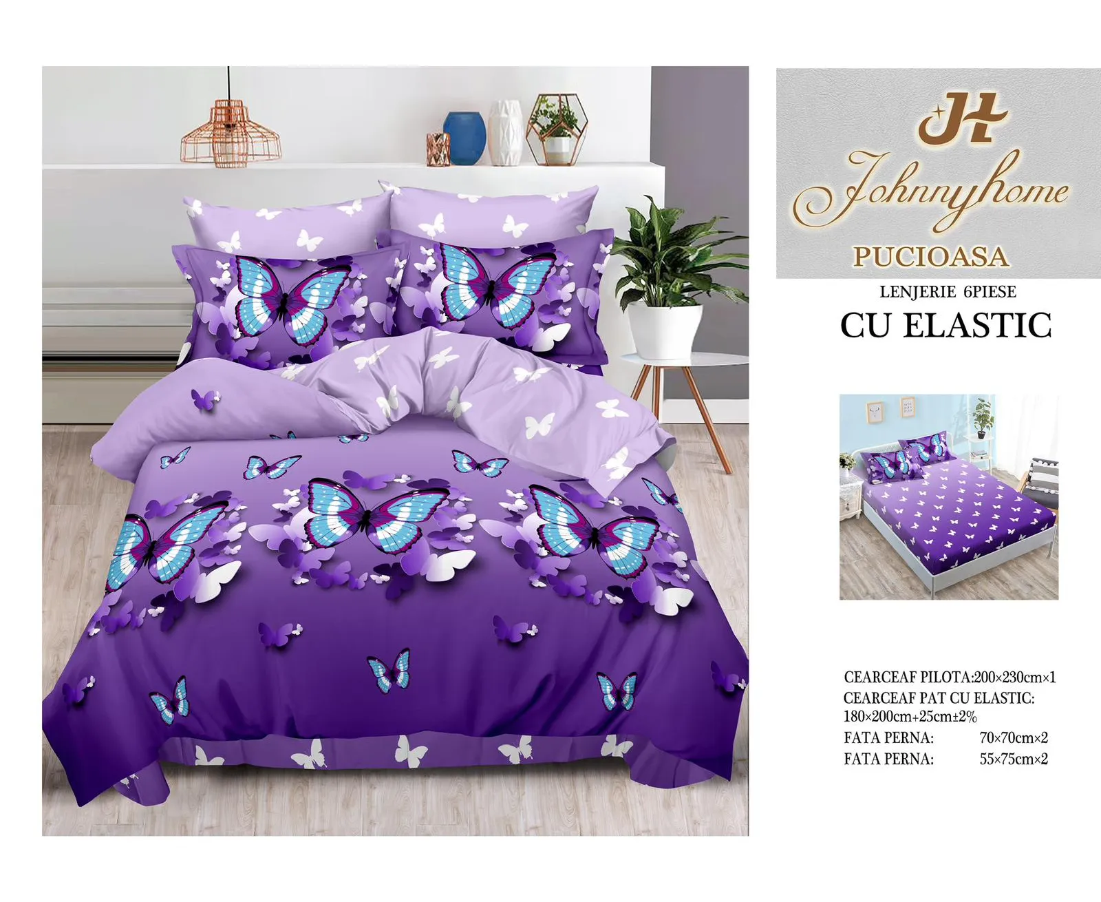 Lenjerie De Pat Bumbac Finet 6 Piese Cu Elastic