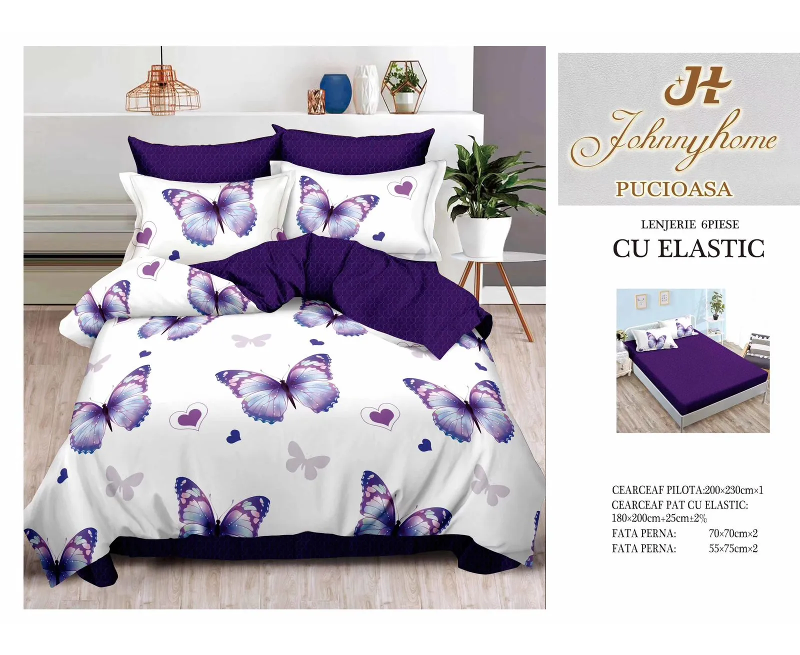 Lenjerie De Pat Bumbac Finet 6 Piese Cu Elastic