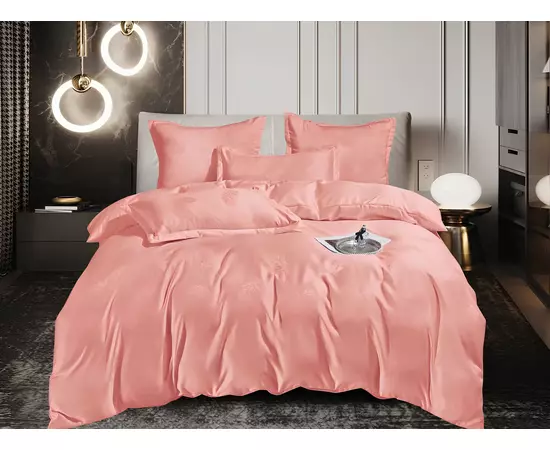 Lenjerie de Pat Jacquard Satinat, cu Elastic, pentru Pat Dublu, 6 Piese, Coral - ION79