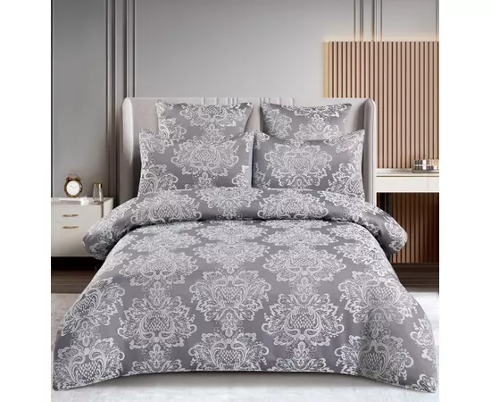 Lenjerie de Pat Finet Jacquard cu Elastic, pentru Pat Dublu, 6 Piese, Gri Deschis - SIPR-T3-14