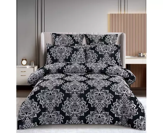 Lenjerie de Pat Finet Jacquard cu Elastic, pentru Pat Dublu, 6 Piese, Negru - SIPR-T3-13