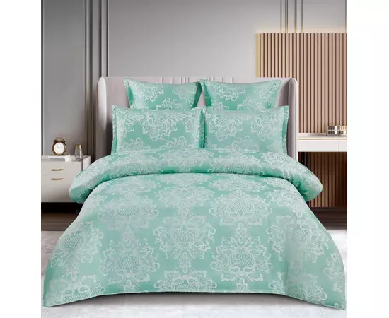 Lenjerie de Pat Finet Jacquard cu Elastic, pentru Pat Dublu, 6 Piese, Verde Menta - SIPR-T3-01