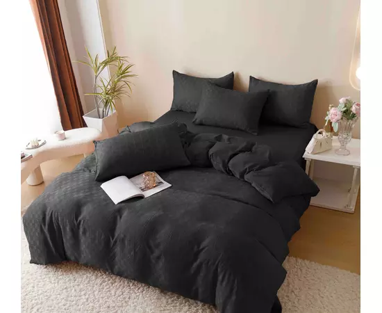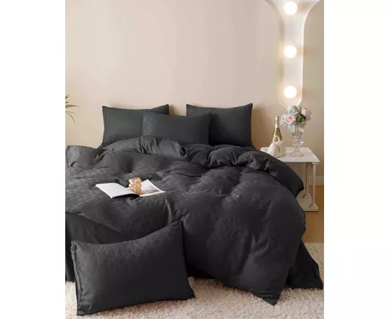 Lenjerie de Pat Finet Jacquard PREMIUM, Pat Dublu, 6 Piese, Gri Fume -JO182