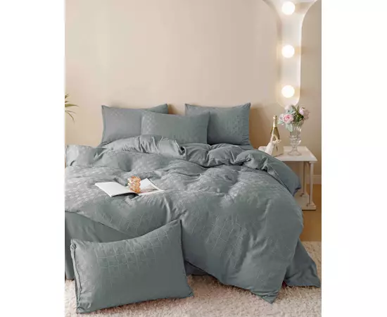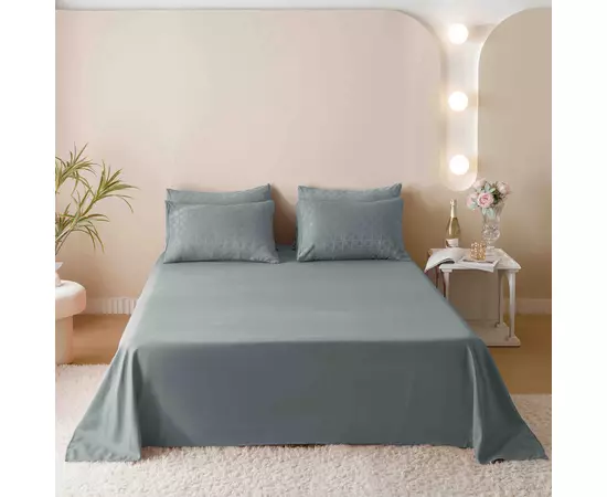 Lenjerie de Pat Finet Jacquard PREMIUM, Pat Dublu, 6 Piese, Gri -JO183