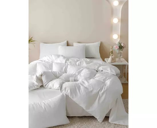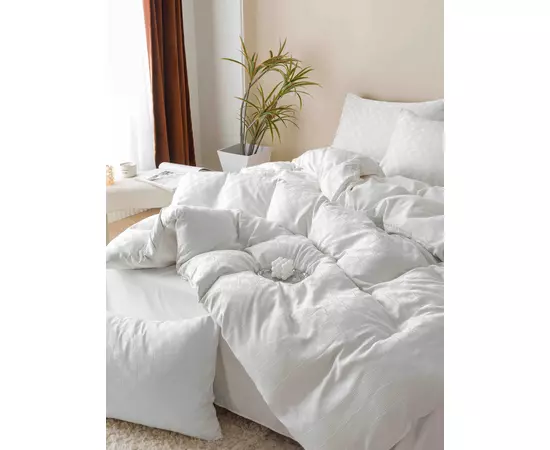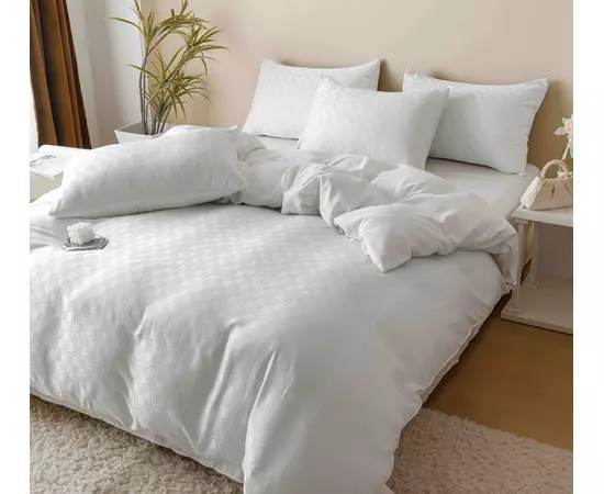 Lenjerie de Pat Finet Jacquard PREMIUM, Pat Dublu, 6 Piese, Alb - JO178