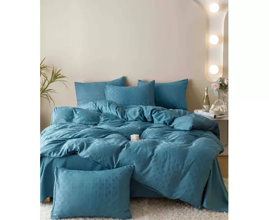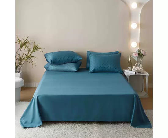 Lenjerie de Pat Finet Jacquard PREMIUM, Pat Dublu, 6 Piese, Verde -JO187