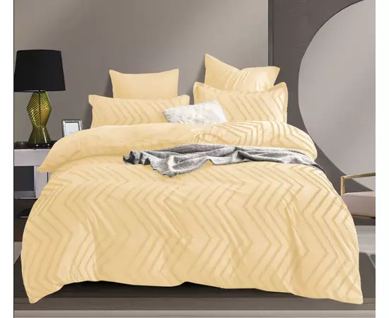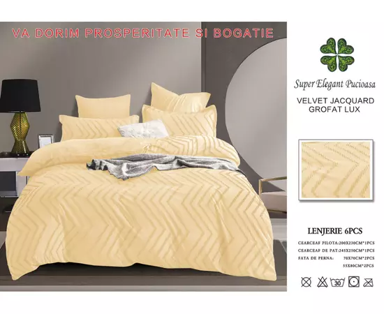 Lenjerie de Pat Finet Jacquard Velvet Gofrat, Pat Dublu, 6 Piese, GALBEN - PUC116