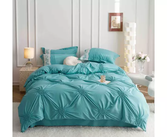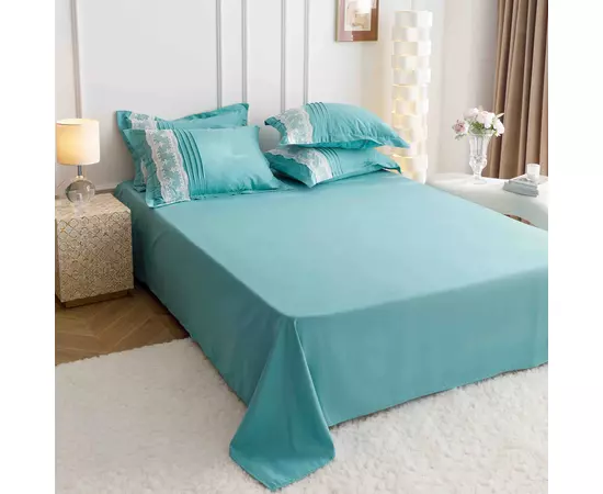 Lenjerie de Pat pentru 2 persoane cu 6 piese confectionata din Bumbac Finet.