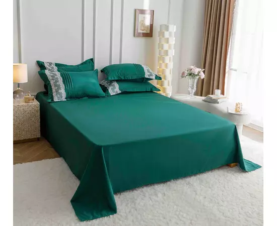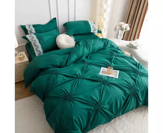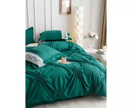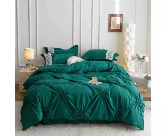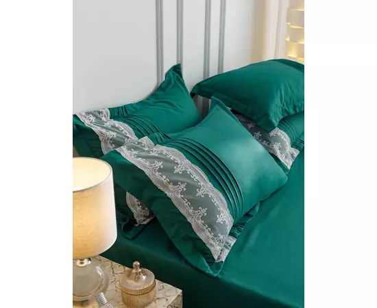 Lenjerie de Pat Finet, Pliuri Brodate, 6 pcs - JO117 Verde Smarald