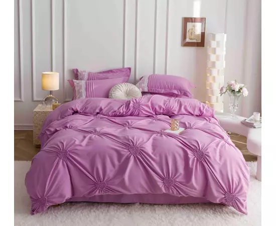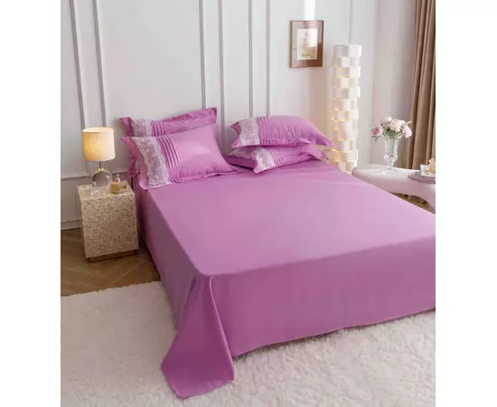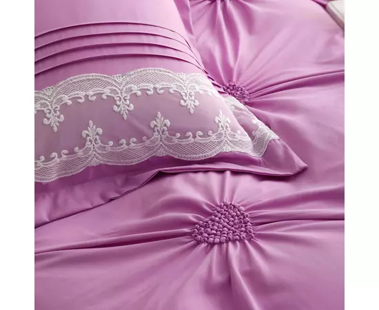 Lenjerie de Pat Finet, Pliuri Brodate, 6 pcs - JO121 Mov Deschis