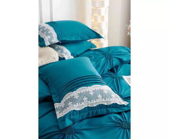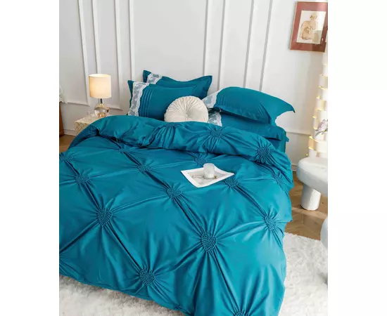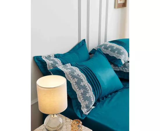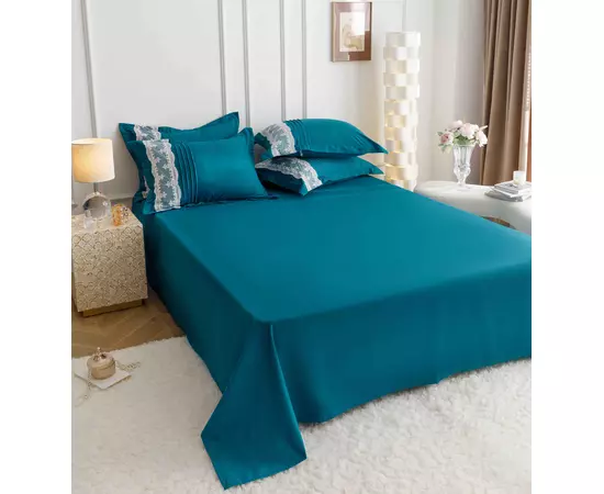 Lenjerie de Pat pentru 2 persoane cu 6 piese confectionata din Bumbac Finet.