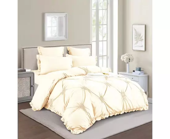 Lenjerie de Pat Finet, Pliuri Brodate cu Elastic, 6piese - SIPRT1-02, Culoarea Untului