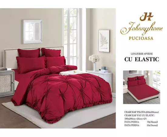 Lenjeria de pat finet cu pliuri brodate și elastic, formată din șase piese, reprezintă un amestec perfect între eleganță, confort și funcționalitate. Fiecare aspect al acestei lenjerii este meticulos proiectat pentru a aduce o notă de rafinament și lux în dormitorul dvs.