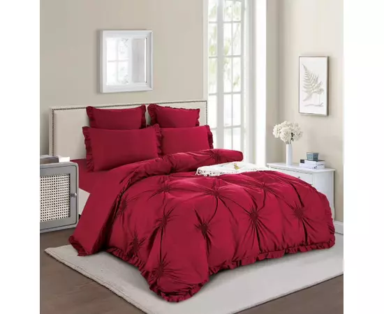 Lenjerie de Pat Finet, Pliuri Brodate cu Elastic, 6piese - SIPRT1-03, Bordo