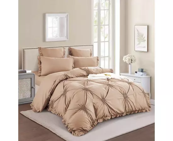 Lenjerie de Pat Finet, Pliuri Brodate cu Elastic, 6piese - SIPRT1-05, Bej
