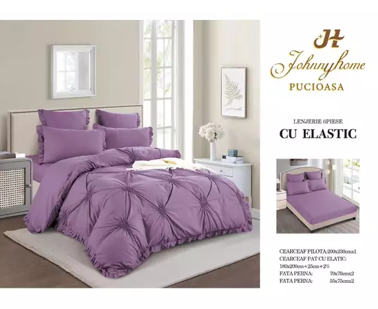 Lenjeria de pat finet cu pliuri brodate și elastic, formată din șase piese, reprezintă un amestec perfect între eleganță, confort și funcționalitate. Fiecare aspect al acestei lenjerii este meticulos proiectat pentru a aduce o notă de rafinament și lux în dormitorul dvs.