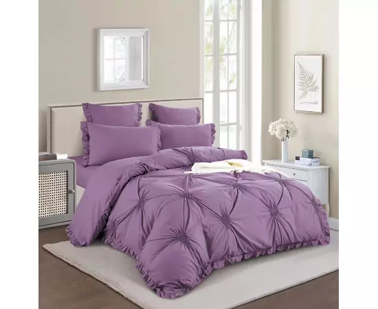 Lenjerie de Pat Finet, Pliuri Brodate cu Elastic, 6piese - SIPRT1-07, Mov