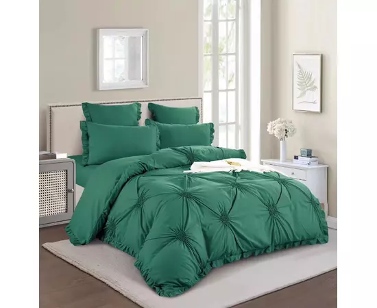 Lenjerie de Pat Finet, Pliuri Brodate cu Elastic, 6piese - SIPRT1-10, Verde